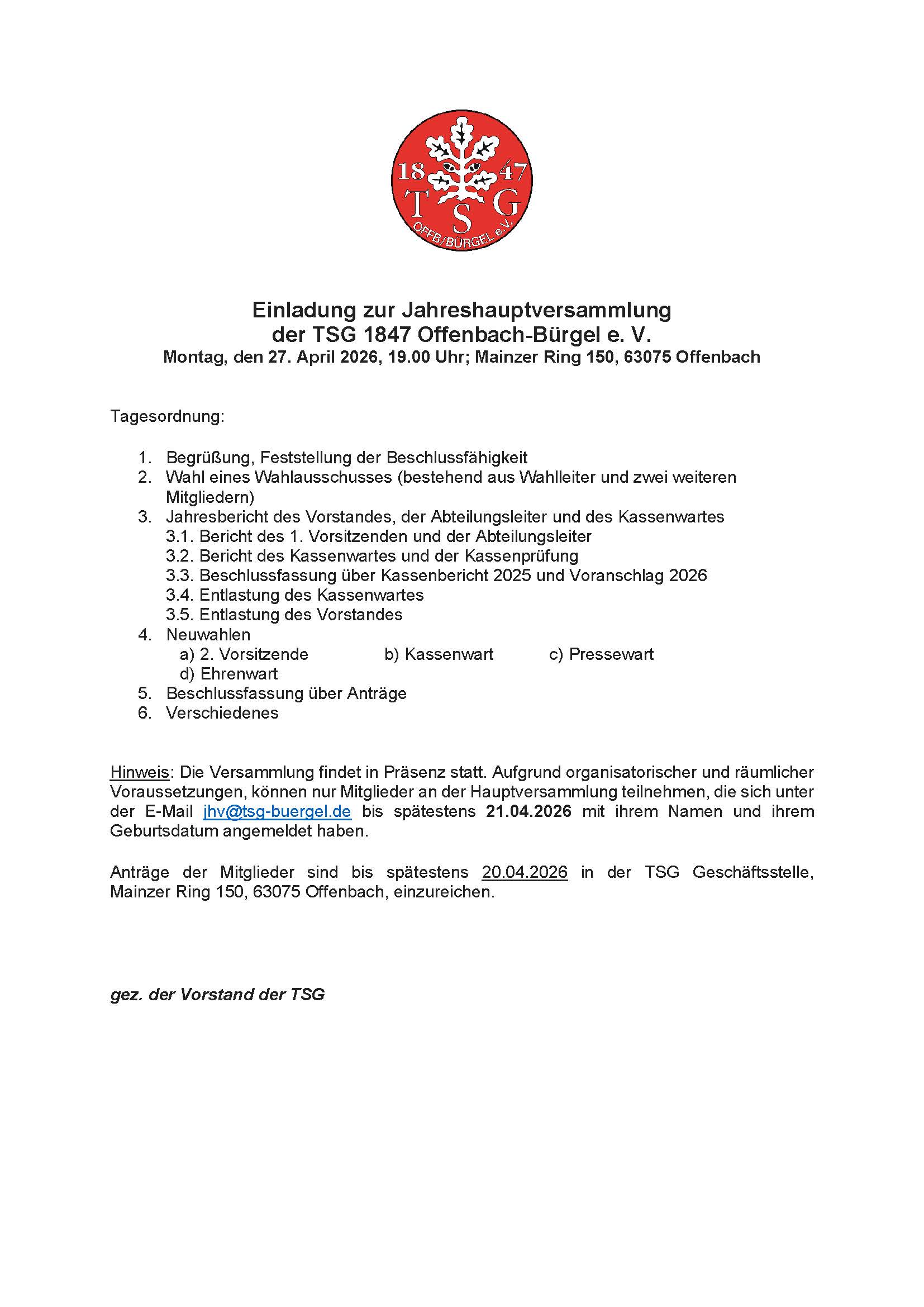 Am Samstag, den 18. April, feiert die TSG Bürgel ab...