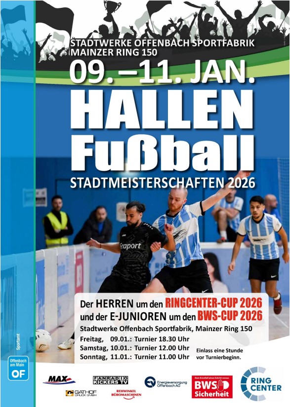 Die alljährlichen Hallenfußball Stadtmeisterschaften 2026 finden dieses Wochenende in der Stadtwerke Offenbach Sportfabrik statt.